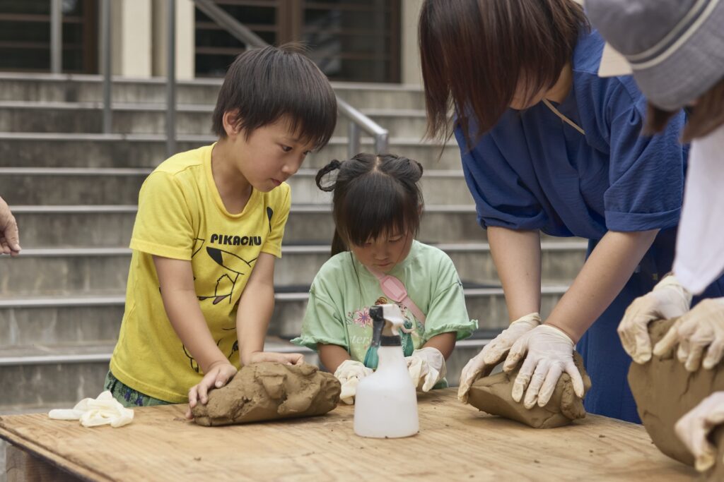 連日工房で粉砕作業を続けた粘土を使用して、成型するまでのワークショップを9月6日に行いました。