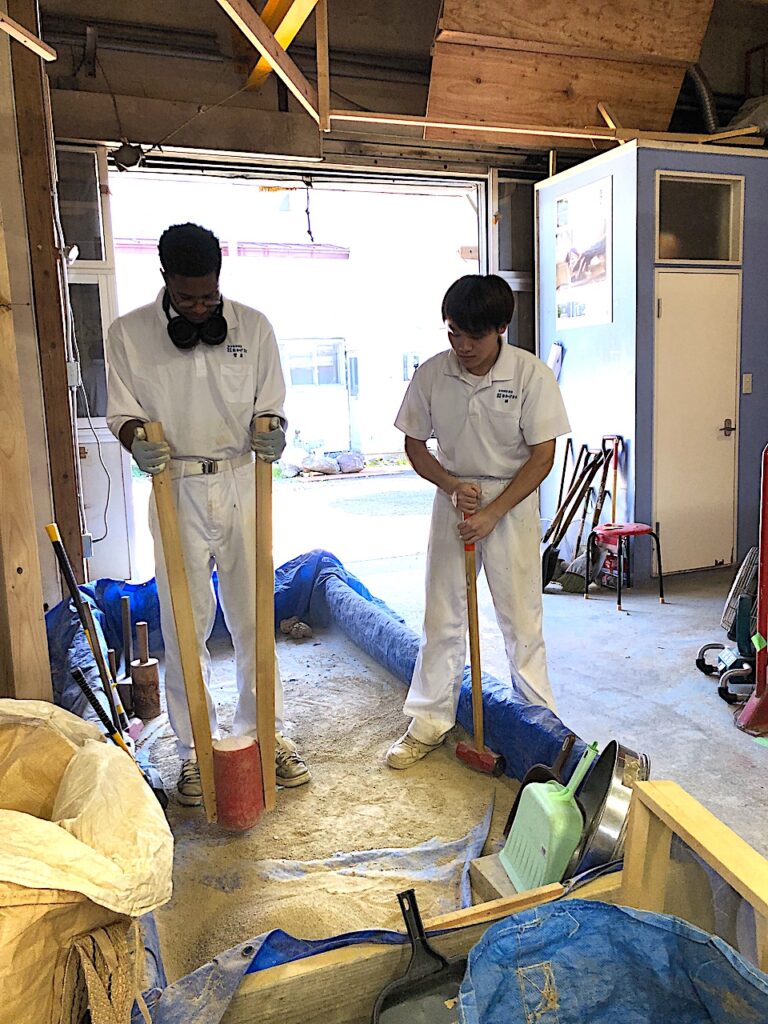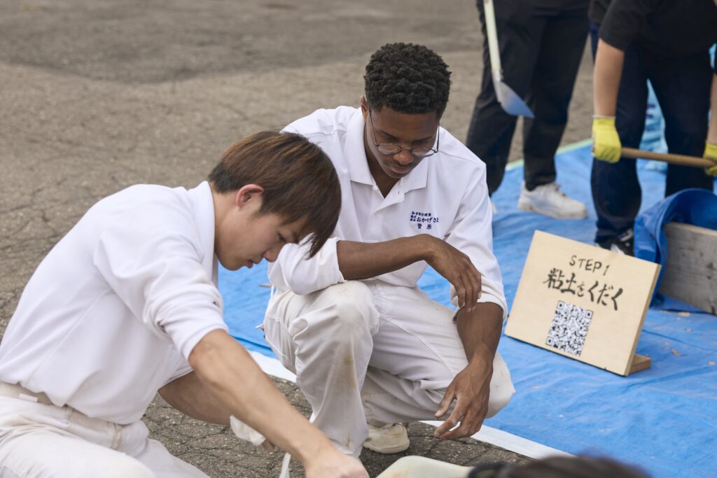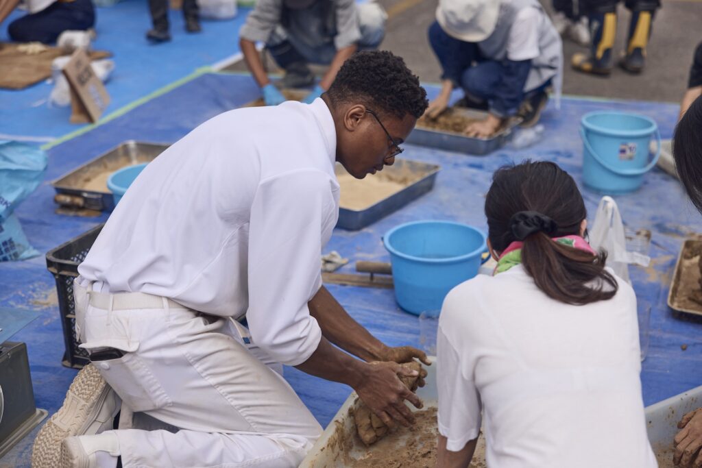 永祥寺様で行われたレンガ作りのワークショップでも、参加者の方々と積極的にコミュニケーションをとり共同作業に勤しみました。