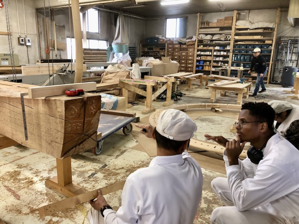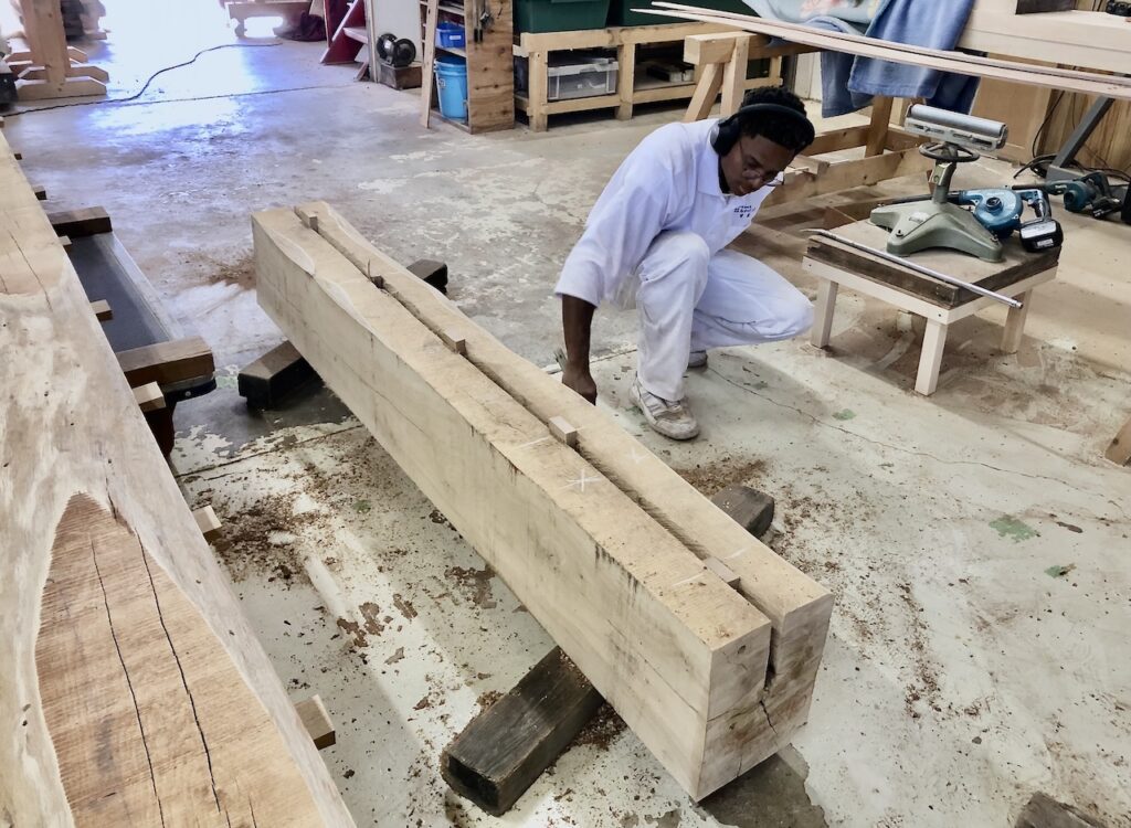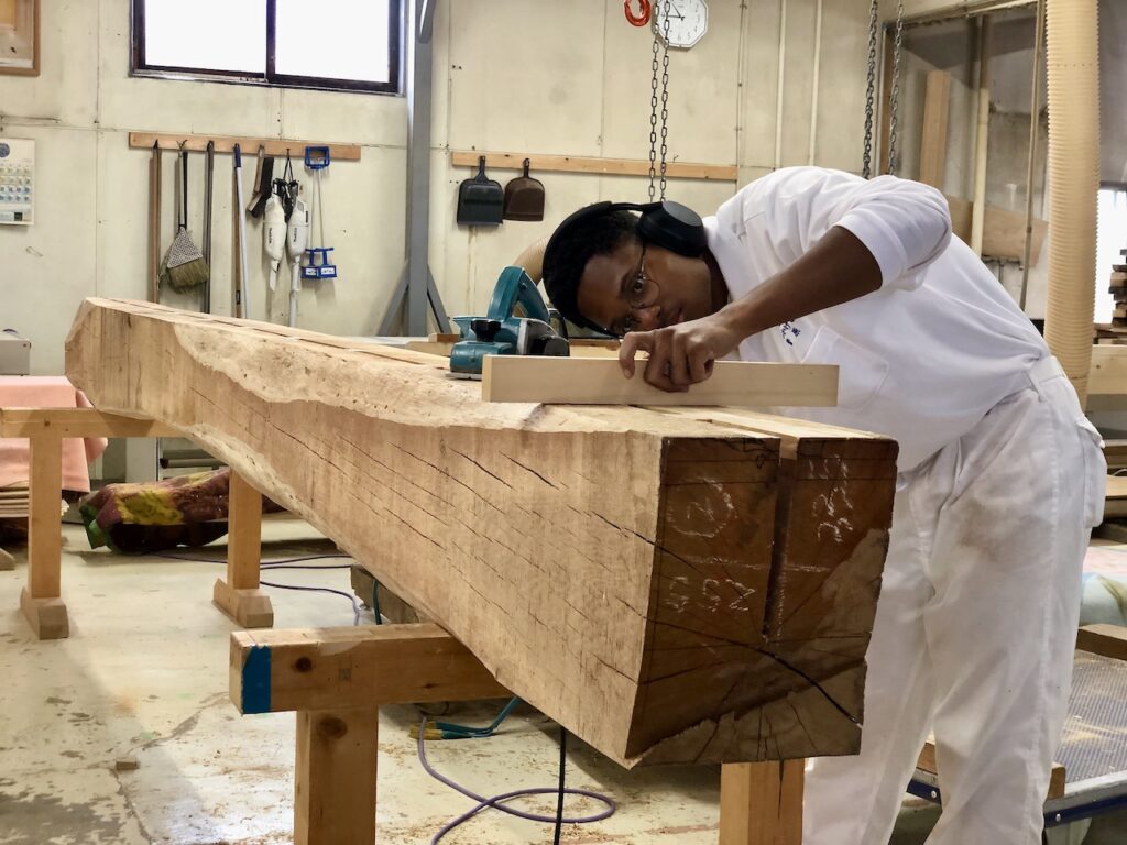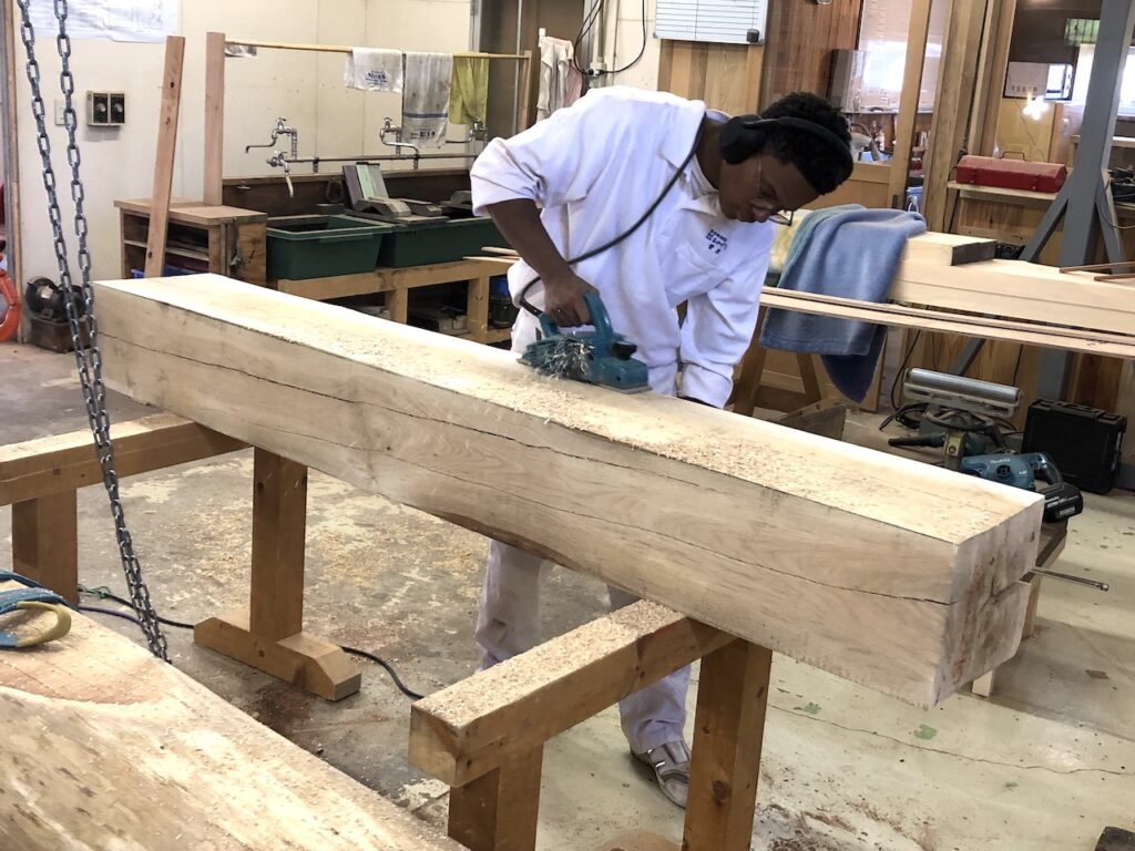 木取り、木作り、刻みなど、職人たちの仕事を手伝ってくれています。