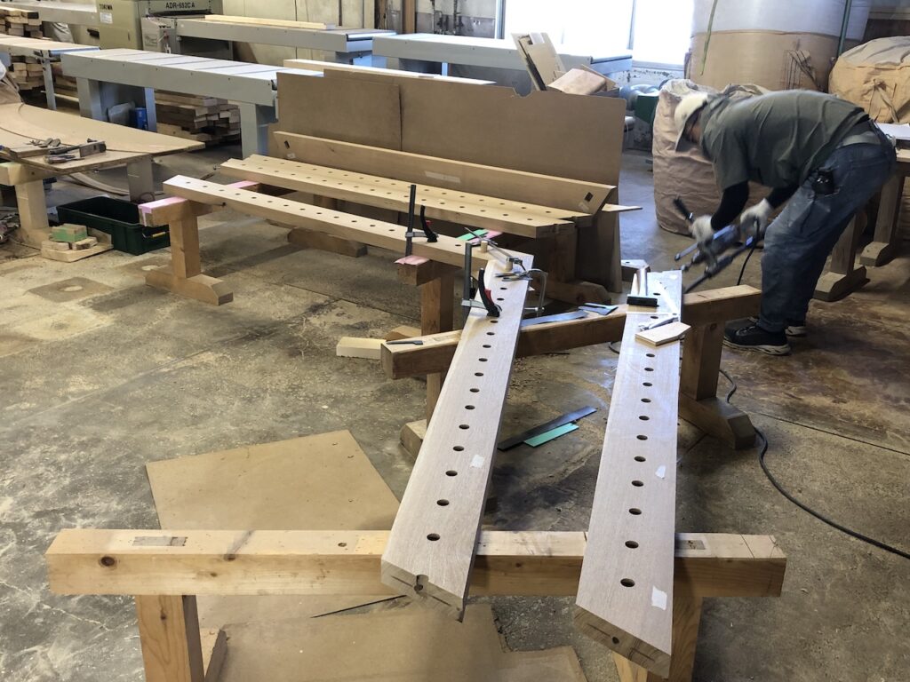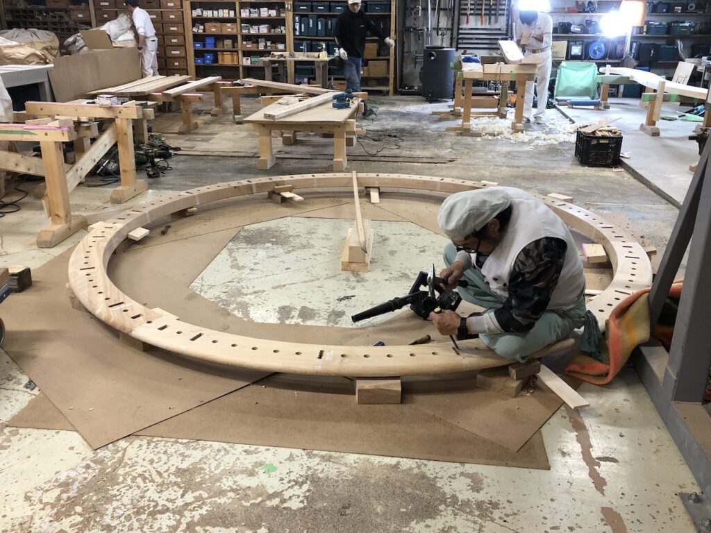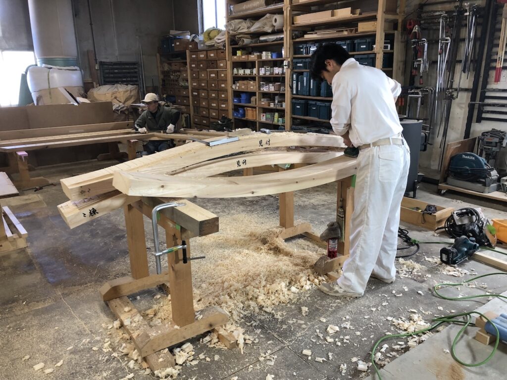 機械ではできない難しい手加工が必要な部材が多く、連日、熟練の職人さんたちが腕を振るってくれました。